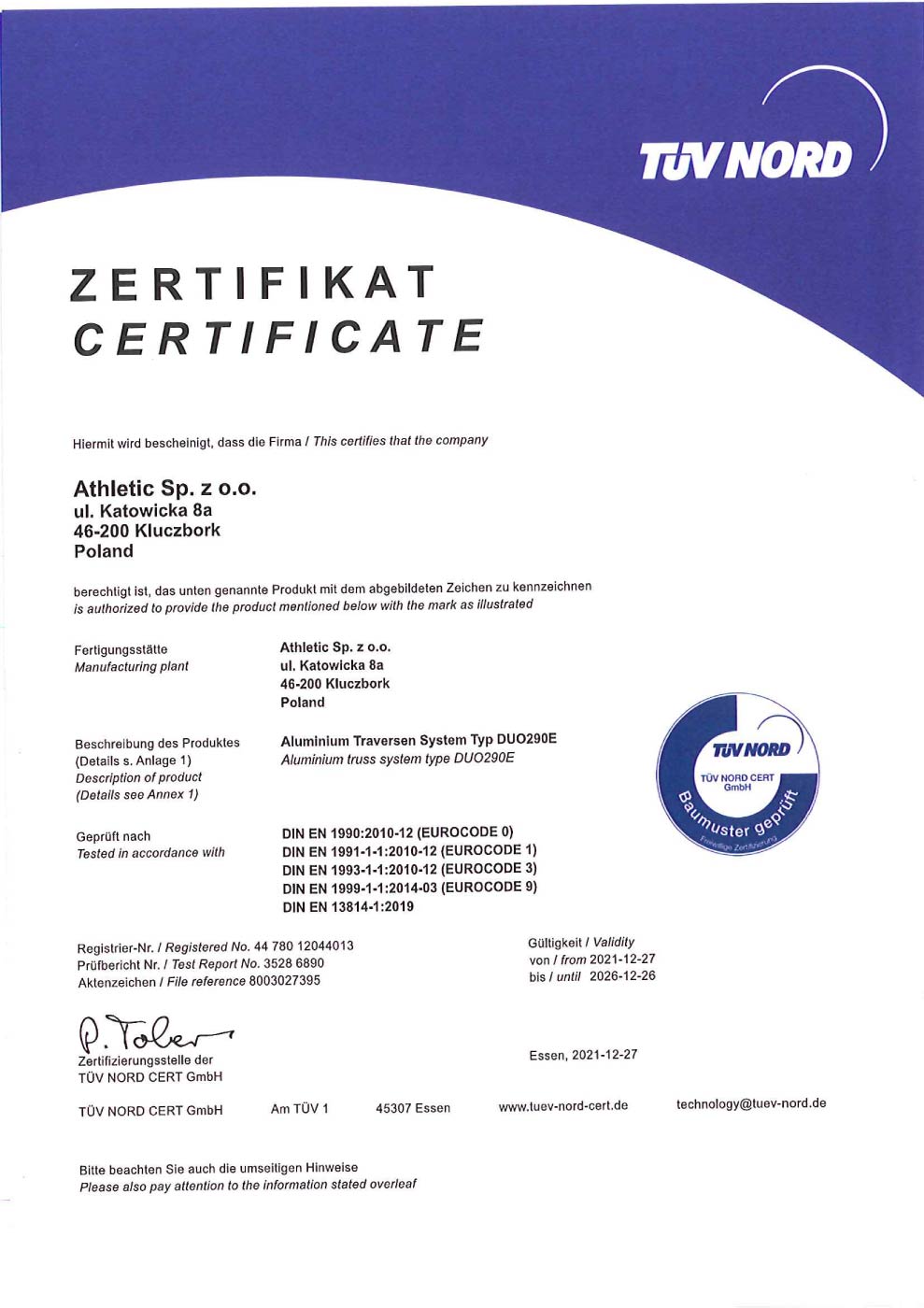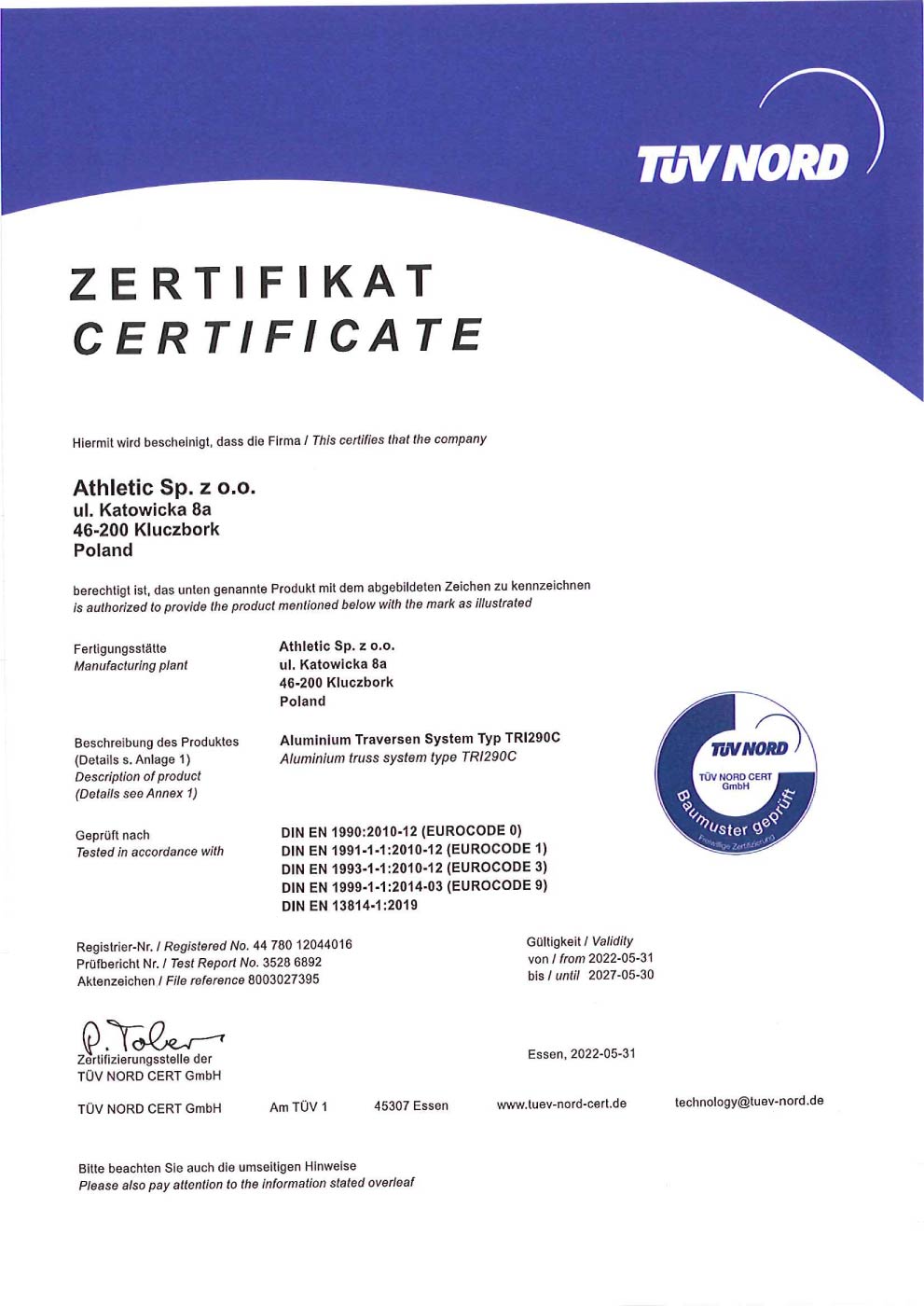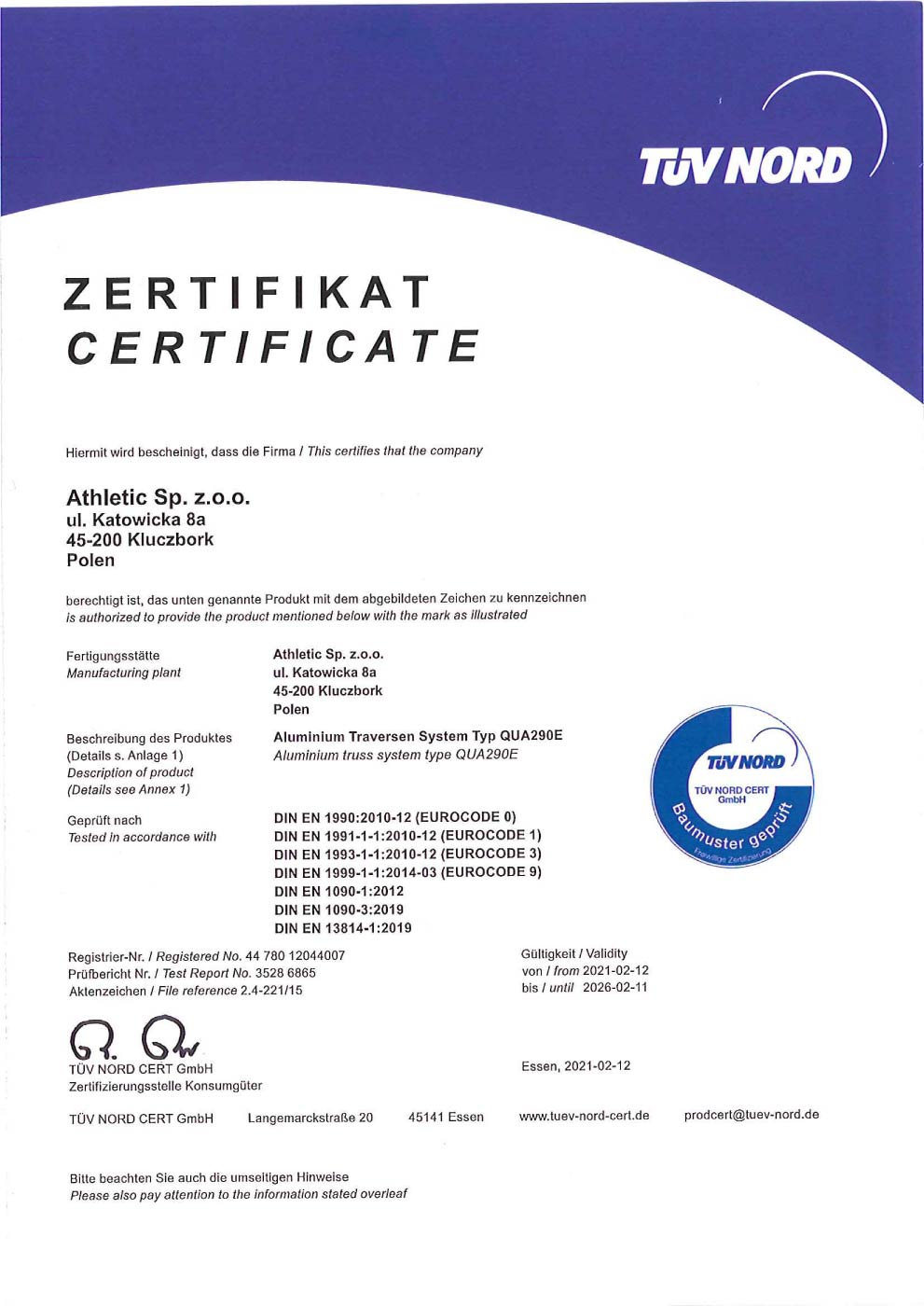 Discover Our TÜV Certificates