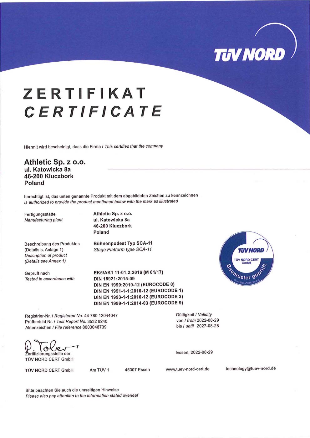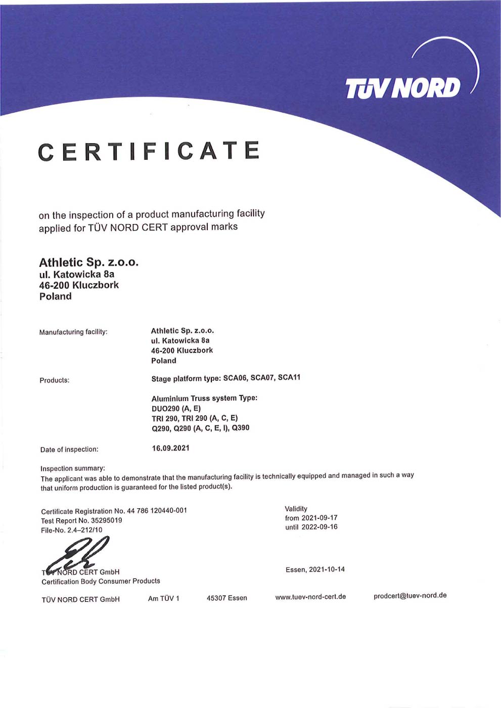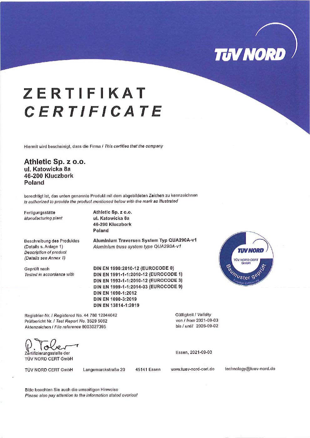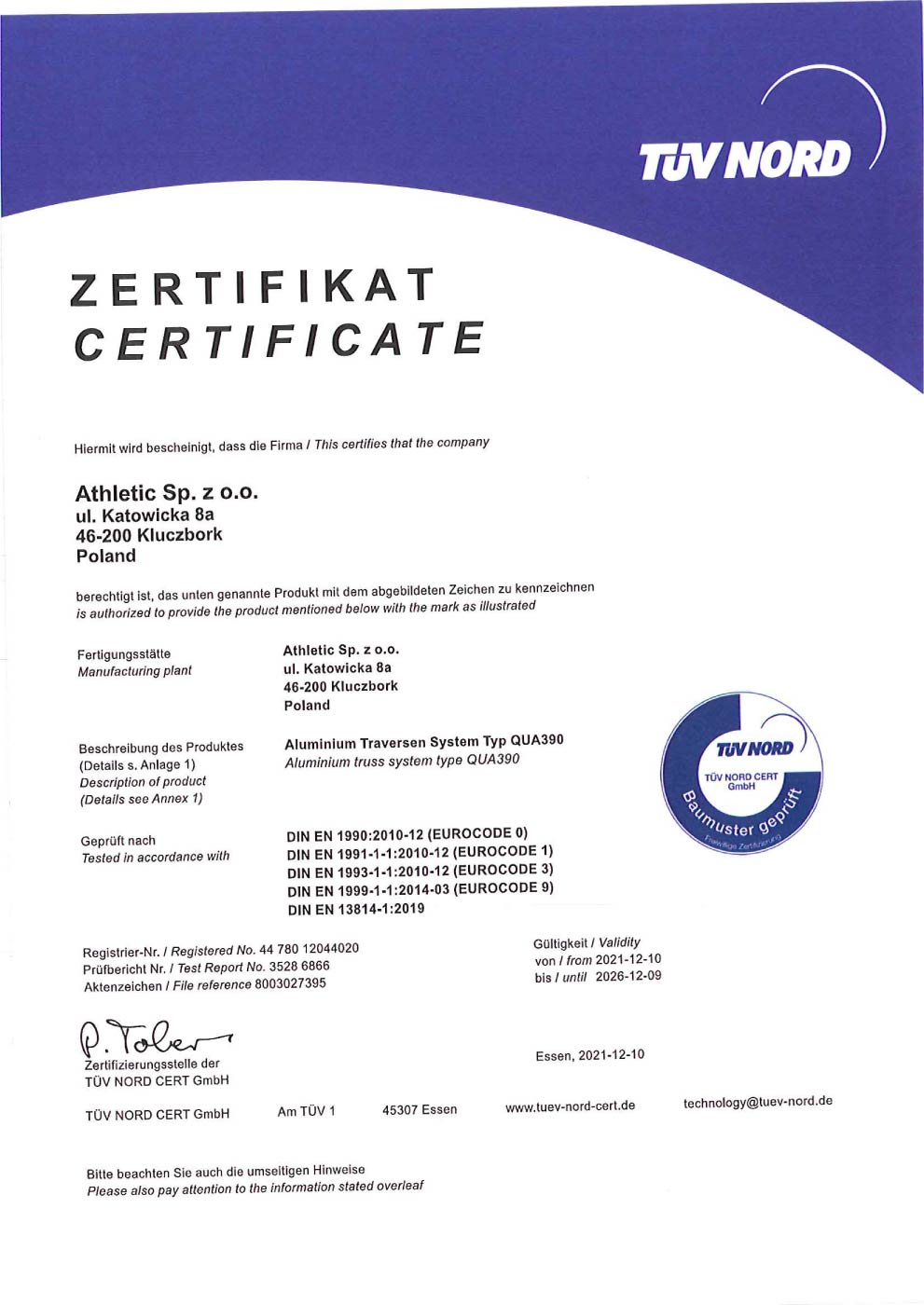 Discover Our TÜV Certificates